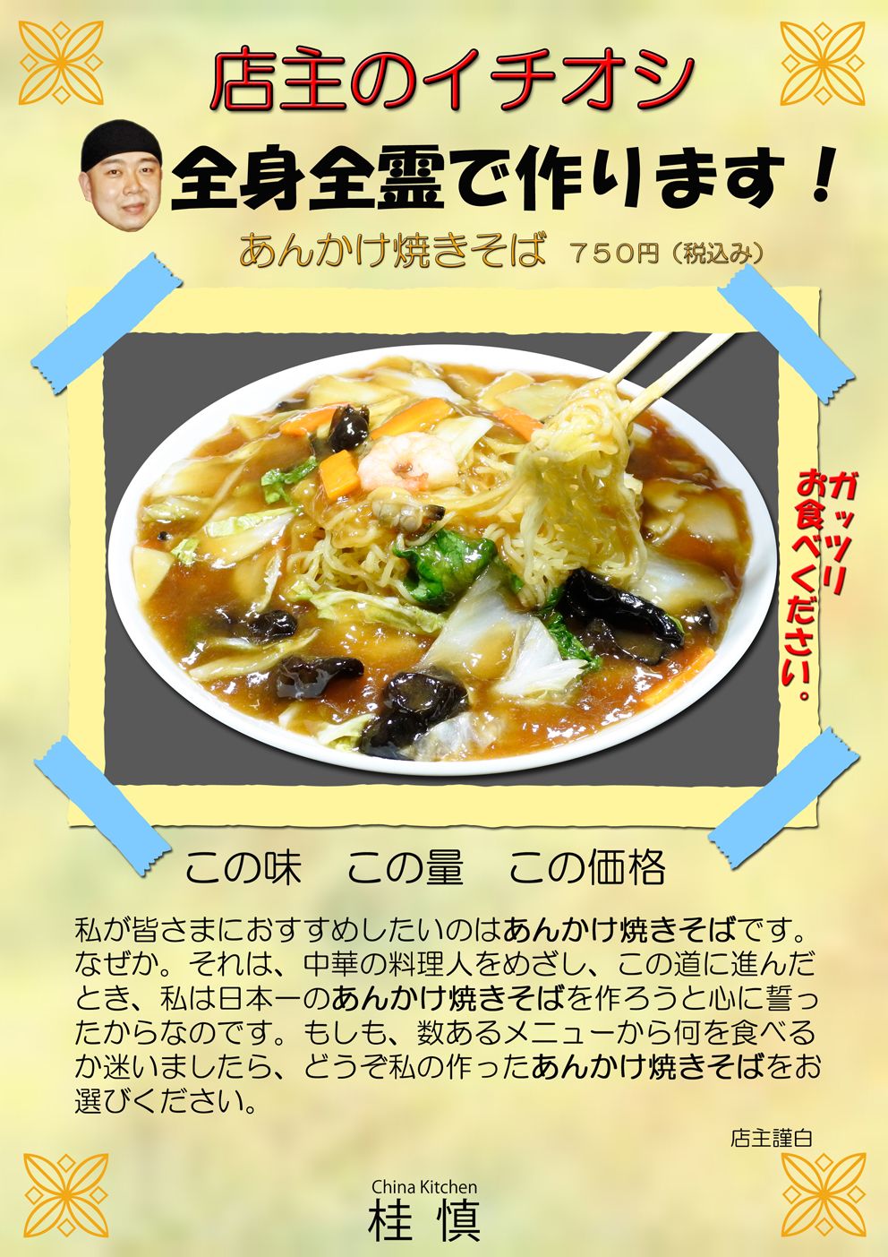 そして裏面は〈あんかけ焼きそば〉の盛りを詳細に致しました。
