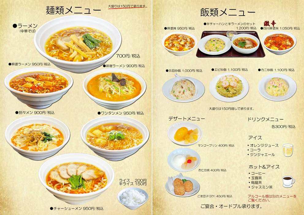 そして、メニューの一新にともない、《お持ち帰り料理》と《オードブル》のご案内も新しくなりました、コチラです(^o^)/