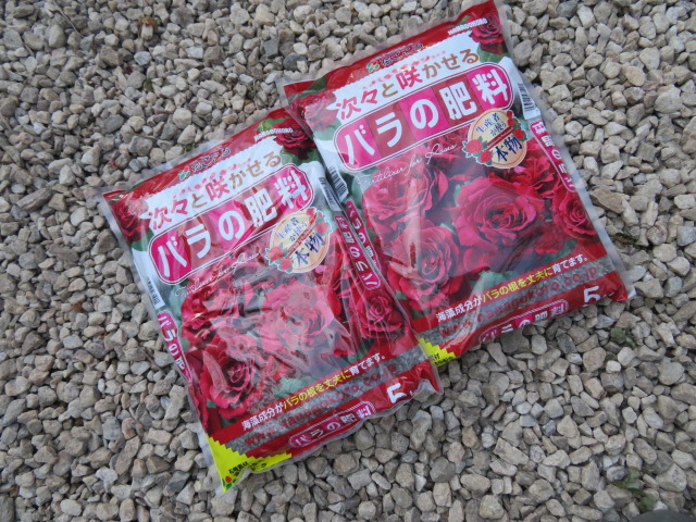 美しいバラの開花に向けて肥料も与えましたよ^^