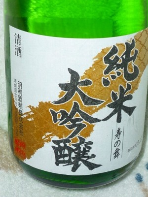 昨日に引き続き、明利酒類の今度は純米大吟醸酒。 茨城県 水戸市 寿の舞・純米大吟醸 明利酒類株式会社 岡田喜栄冶(南部杜氏) 使用米不明 精米歩合50% 日本酒度+3 酸度 1.2 アルコール度15 購入価格:980円(720ml)香りはイチゴ、リンゴ、マンゴー?ラムネ?低価格でも流石は純米大吟醸の香り。蒸し米のモサっとした安い香りではなく、思い切りフルーツの香りをアピール。純米大吟醸の格は伊達ではなく、味も爽やかな甘味。透明感の有る綺麗な味の出方でスッキリしており、軽やかでありながら 余韻には確かな存在感。余計な酸や苦味等は皆無で、美味い日本酒の特徴を分かり易く押す。あえて悪いところを上げるなら、味構成が甘味に偏り過ぎてる点か。日本酒度+3とはいっても結構甘めの味だが、これは長所の特徴と丸かぶりなので ほぼ好みの問題。多分このスッキリした飲み口が辛口の印象を出してるのかな!?日本酒に味の幅や厚みを求める人には向かないだろうけど、そういう人は純米大吟醸酒は飲まないと思う。純米大吟醸で この価格で この美味さは 正直言って驚き。「日本酒が苦手」という人は まず価格を知った上で この酒を飲んでくれ、と言いたい位。何故この価格が可能なのか理由を知りたい。公式ページにも情報は無いし。香りも含めて甘味が強いので、これは素材の甘味を活かした様な繊細な料理とはぶつかる傾向にある。とことんシンプルに、塩焼き鳥、塩辛、塩胡椒ハンバーグ、焼きポテトにケチャップと粒マスタード、でなければ後から甘味が欲しくなるような、タイ料理のヤムウンセン、ソムタムが合うと思う。完全に値段以上。4号瓶で1880円前後でも信じる。ちなみに1升瓶の方が1980円で売ってた。これが980円はちょっと信じられないハイコスパ。凄いぞ、明利酒類!初めて「うめ物語」の存在を知った時はイロモノ会社の遊び心か!?みたいな印象も有ったけど、全然違う。純粋にここは酒が上手い、かなりの実力派。「うめ物語」に関しては、作者の うめてんてーwにまずイラストを数点描いてもらい、最終決定した“イラストのイメージに合わせて”梅酒を造ったらしいので、そもそもの本気度が違う。単なる萌え酒メーカーではない 本物志向の会社と認識した。