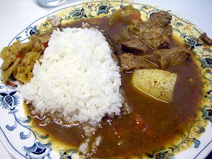 ☆先日、築地場外市場で購入した「カレースパイス」で-- ☆休日のランチ☆ --ken パパ スペシャル 「普通の ビーフ カレー 」By 炊飯器゚*+。。+*゚゚*+。。+*゚ うちの女房の良く作る「ロシアンカレー」ではなくみんな同じ辛さの 「普通のカレー」を作りました。(笑先日、築地の場外市場へ行ったときに購入したスパイス確か、400円ぐらいだったと思います。辛さ、香りなどはスパイスの分量で調節できます。いつものように炊飯器に具を入れて、炊飯ボタンを押して保温になったら、この「カレースパイス」を入れて小麦粉を炒って入れ (レンジ) とろみを付けて完成です。朝食を食べ終った時にご飯と一緒にタイマーを入れたので好きな時間にランチです。自家製オクラのピクルス 添えこちらの ママさん の作る カレー 見たく具は大きめで、ジャガイモは丸ごと・・・ただ、切るのが面倒だったこともありますが・・・「カレー」と「お鍋」普通、食卓には一緒に出さないのですが・・・お邪魔すればわかります。炊飯器 = 電磁料理器 そのまま保温になるし煮崩れしないので、ここ5、6年はこの方法でカレーを作っています。さすがスパイスから作ると 香りが違いますね。美味しかったです。今日のカレーは、女房が 3つで、息子が 2つ半。いつもの "カレールー" がいいと・・・ちょっと香りが、きつかった かも知れませんね。 このお店で買いました。築地場外市場 「からいもの屋 築地 高梨」大きい唐辛子 が目印です。☆きのうの私のページで、お友達のママさんのページとリンクを張ったのですが、アクセスが急に増えて大事なお友達の足跡が消えてしまったそうです。これで2人目です。この場を借りてどうもすみませんでした。以後、前歴のない方にはリンクは張らずにご紹介のみとさせてもらいますので。゚*+。。+*゚゚*+。。+*゚今日20日も夕方から悪友数名と飲みに行きまして湘南に行きたーい。海に入りた~い。で意見が一致。それも、バイクで行こうと・・・私のは七里ガ浜の家に置いてあるから良いのですけどみなさん、板はどうするのでしょうか?実に面白いこと考えますね~ (笑それより、温かいハワイに行きたいです。息子のゼミは年内 31日まで、来年は 2日から冬季集中講座だそうです。 来年のお正月は無理ですね。毎年、お正月は暖かい ハワイ なのですが・・・スイスで スノボ も いいですね~「寒いときに寒い所 行ってどうするの!」 と女房に言われますが・・・私1人ですかね。-- ☆休日 20日のランチ☆ -- 3つ と 2つ半の 男のこだわりカレー でした。それではSee You LaterGood bye!By ken455o^o---