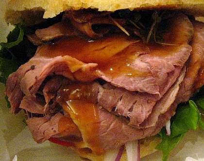 ☆今日は一昨日のローストビーフをパンにはさんで-- ☆今日のランチ☆ --「ローストビーフサンド」By 家弁゚*+。。+*゚゚*+。。+*゚包丁では上手く切れないので"キャベツスライサー"で薄くCUTしてサンド。オフィスのみんなにもおすそ分けと思い女房に10個位 作ってもらい、今日のランチMy 手作り ローストビーフサンドオフィスのみなさん、このローストビーフを私が作ったってこと半信半疑でした。ほんと、今回は上手く出来ました。焼き豚、チャーシューではなくローストビーフでした。゚*+。。+*゚゚*+。。+*゚次回は「スペアリブ」に挑戦です。それではまたSee You LaterGood bye!By ken455o^o---☆日経平均大引け、1カ月半ぶりの1万100円台回復 6日続伸は5カ月ぶり 週 明け7日の東京株式市場で、日経平均株価は6日続伸。大引けは前週末に比べ145円01銭(1.45%)高の1万0167円60銭だった。1万0100円 台は1万0212円を付けた10月27日以来、約1カ月半ぶりの高値水準。6日続伸は、7月14~27日に9日続伸して以来、約5カ月ぶりの連騰記録とな る。1ドル=90円台への円安進行を受けて輸出関連株を中心に買いが広がった。この1週間で相場水準が急速に切り上がり、株価指数先物に相場上昇リスク を回避(ヘッジ)するための買いが入ったことも相場全体を押し上げた。東証1部の売買代金は概算で1兆3999億円-o-o-