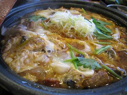 ☆今日、日経平均一時9400円を切りましたね。そういう訳ではないのですが、これで一発 のはずが・・・ 大引け 9401円、先物は後場大引け -100 の9390円。 どうしましょうかね。(笑 -- ☆今日のランチ☆ --「特上ロースカツ煮」By 日本橋 人形町 一栄゚*+。。+*゚゚*+。。+*゚なぜか今日は"そば"に"天ぷら"が食べたくなり蕎麦屋に入ったのですが・・・"カツ丼" にそそられて・・・カツ丼・・・カツ丼・・・カツ・・・に・・・カツ煮・・・ (笑確かこのような名前だったと思うのですが別々に食べられる? 「卵とじ カツ煮」 を土鍋からはみ出るぐらいの大きなロースカツそれと サラダ、赤出汁、香の物1600円ロース、ヒレ共、同価格 ご飯、赤出汁共お替り可上 だとロース、ヒレ共 1200円、ランチサービスのカツ煮だと 800円あと、"玉子とじ"がない、ただの"カツ煮" もありました。見てくださいこのお出汁の色をやっぱり、ここはお江戸 日本橋~~♪先日食べた親子丼と同じお出汁が濃い。(笑 Beer の"あて"には最高ですね。 2人で大瓶2本とろとろの玉子がまた、なんとも言えない位 旨い!どうですか、フワフワのトロトロ でしょ。それもかなり濃い目のお出汁。軽く、ご飯 3杯は行けますね。こちらは、揚げたてのサックサクのロースカツ。しばらくして濃い目のお出汁を たっぷり含んでお肉が柔らく フワフワ~ これが、また実に 美味しかったです。初めはそのまま ご飯と交互に食べて、2杯目カツを載せて・・・ 3杯目・・・お出汁の残った土鍋に・・・ かなりお行儀が悪いですが ご飯を 投入。 "雑炊"とも"おじや"とも 言えない至高の旨さ。 美味しかった~皆さんがこのカツが大きめの特上を頼んでいました。上カツ煮はこれより肉が薄くなる見たいです。ランチサービスのカツ煮はカツが小さいと思います。なにせ この時間帯(11:00~12:00) は付近の証券マンぐらいしか食べていないのでランチサービス品を食べる人が少ないです。←居ないカツ丼、親子丼も、もちろん好きです。でも、"カツ煮" 良いですね。フワフワ トロトロ の玉子冷めたお惣菜のカツでも出来ますよね。メンチとか車麩、油麩(仙台麩) なども美味しそうですね。☆「辛そうで辛くない・・・少し辛い ラー油」By 桃屋今、我が家はこれに、はまっています。だって、炊きたてのご飯に載せて食べると美味しいですよ~私、不味い物紹介しませんから、自治会?がうるさいので ハッハハハ~それではまたSee You LaterGood bye!By ken455o^o---