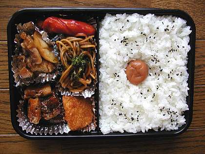 ☆今日はお天気が良くてポカポカ、散歩がてらランチ日和こう云う日は・・・ お弁当を公園で食べようと思ったのですが・・・誰も付き合ってくれませんでしたよ。(涙"-- ☆今日のお弁当☆ --「幕の内?弁当」By 妻弁゚*+。。+*゚゚*+。。+*゚イカみりん焼き 豚しょうが焼き 一口カツ富士宮焼きそば(デパ地下) ケチャップウインナー先日、新宿のデパ地下で B級最強 「富士宮焼きそば」を実演販売していたので女房と 1パックはイートインでもう 2パックはお持ち帰りしました。麺が中太で味が濃い目、美味しいです。出来立てはすごく美味しかったです。(2日目に残りが弁当入り (笑)この日は帰りがけ、飲みに行くので食べた後カバンに横にして入れられるように"1段弁当箱" でカバンがプチデブはカッコ悪いし置いて帰るのも・・・先日、お友達のアフィリエイトを通して購入した山形の特A 「はえぬき米」。冷めても美味しいです・・・が軽くレンジでチンしてうんちく → 14年間 特Aのお米は新潟魚沼産「こしひかり」とこの山形産「はえぬき」の2品種だけです。1段、平型のお弁当箱でもご飯がかなり入りますね。見た感じ少なくて足りないかと思いましたが・・・やっぱり 少し足りません。(笑 食後の一服、ドトールで"抹茶ラテ"と"ベーグルサンド"を・・・禁煙席は席に余裕がありましたが 喫煙席は満席。お昼時のCafe はどこも喫煙席が混んでいますね。新宿本社勤務の時は、近くにネットCafe があったからゆっくりお昼を過ごせたのですが、ここは、近所にありません。たぶん、あったら終業時間まで居ると思いますが。マッサージチェアーでゆっくり ランチタイム。そう言えば、以前は弁当を持って良く行きましたね。(笑゚*+。。+*゚゚*+。。+*゚それではまたSee You LaterGood bye!By ken455o^o---