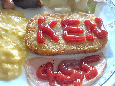 ☆ken パパ スペシャル ランチ で~す。・・・が作っている最中、器を 1つ 割ってしまいました。(汗"゚*+。。+*゚゚*+。。+*゚-- ☆今日の家ランチ☆ --冷凍庫にあった ハンバーグにパン粉を付けて「メンチ」゚*+。。+*゚゚*+。。+*゚付け合せは パスタ ブロッコリー ウインナー ハム ベーコン トロトロ 目玉焼き など味噌汁は朝の残りで、あとは、わさび漬けに辛くない少し辛い ラー油 など息子のはハンバーグに SP メンチ 1/2 。← 半分はサンドに 目玉焼きは好きではないので PASS。私、コロッケなどは パンク しますが「メンチ」はいいですね~ パンクしません。女房の目玉焼き は GOOD! 上手く行きましたよ~女房ほどではないですが、かなり トロトロに ハンバーグメンチの上にハヤシソースをかけて今日のランチ完成です。 By kenパパこの丸いキャセロールを、オーブンに入れたのですが1つ ひびが入り急遽、角皿で ← 私のです。煮込みハンバーグ用の土鍋か、先日、お友達のブロガーさんのページで買ったダズン鍋でも良かったのですが・・・食器が揃っていないと、なにか変ですね。女房の目玉焼きは上手く行きましたが私のは乗せた途端に・・・崩れてしまいました。(汗"今日の kenパパ ランチ息子と女房に 2つ半もらいました。 5つが最高それから先日、私が作った ローストビーフ なのですがこちらの ママさんが、このように簡単に作っておりました。レンジでチン。こちらのママさん最近お友達になったのですがお料理が上手で、詳しくレシピを UP しております。どうぞご参考に。しかし、私のブログのお友達のママさんはド~ンのママさんやお弁当の達人 ママさん とかみなさん、お料理が上手ですね。私のブログの読者は半分が独身なので簡単に出来そうなのがありましたらぜひ、このブログで紹介したいと思いますのでお届け物先日、築地で買った物が届きました。今朝の朝食はこの中の サケを焼きました。牛すじ煮込み と 我が家ご愛食の 天狗納豆長くなってしまいましたね。別のページにすれば良かったかなぁ (笑゚*+。。+*゚゚*+。。+*゚ 2つ半 頂いた ken パパ 作今日の家ランチ 「ハンバーグでメンチ」これから、みんなで「廻る 中華」を食べに行きまーす。それではまたSee You LaterGood bye!By ken455o^o----- お詫び --リンクを張りました、お友達のママさんのアクセスが急に増えまして「大事なお友達の足跡が追えなくなった。」とのご指摘があり残念ですが 「ローストビーフ」のリンクを外させてもらいました。2009-12-20 22:10ken455-o-o-