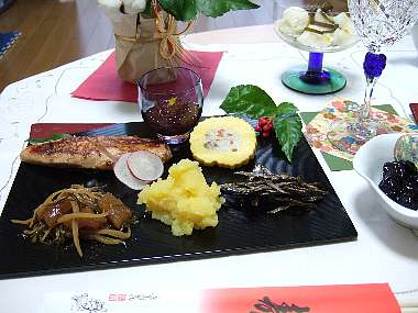 2010 年 我が家のおせち 1月1日 湘南の家から帰ってきたら家の前にもう 来客が・・・ 早~ 慌てて 祝い段角盆を探すも見つからず ( 家族3人分しか用意していませんでした ) 半月丸盆で来客対応です。 我が家は和室の畳をフローリングにリフォームしたため フローリングに直座り?で・・・ 洋風 和室?または モダン和室?とも 要するに 女房が 「ダニ」 が嫌いなもので 作るとき 初めっから言えよな~ まったくも~ ハッハハハ お取り寄せで頼んだ 「博多 久松」 のおせちは・・・ 湘南のセカンドハウスで、ほとんど食べてしまいました。(汗" その残りと、新宿 伊勢丹 羽衣のおせちで それから 今年も女房が作りました 柚子の中身をくりぬいて ホタテ、カニ、ほうれん草などを詰めたものです。 ほんのり 柚子の香りがして 女房 取って置きの一品です。 おまけ きのう、息子は朝一でゼミへ女房は 息子が出かけるのを見届けてから新宿のデパートへ お友達と 初売り!福袋 を買いにそれも 着物で・・・ マジ?で 私は一足先に 実家へさすがに おふくろの作る「おせち」は 違いますね来客が多いこともありますがこれで ほんの一部?ですから新宿の高層ビルを眺めながら食べるおせちも また格別です。゚・*:. 。.☆☆.。.:*・゚Thank you!(^_-)-☆2010年 元旦ここ 楽天 「お料理 食べ物部門」アクセス ランキング で私 ken455 Toy's Box が 8,697アクセスで 1位お母さんはみんなの応援隊長 さんの 雲母☆きらら ママさん は 5位 「雲母☆きらら ママさん」 2,776アクセスおっとりママのどすこい日記 さんのあらぴーママさん は 9位 「あらぴーママさん」 2,377 アクセスベルママのちょっとイイ話 さんのベルママさん は 10位「ベルママさん」2,318 アクセス以上リンク 並びに、ご紹介いたしましたお友達はすべて10位 以内に入りました。ありがとうございました。d(゚Д゚)★スペシャルサンクス★( ゚Д゚)bそれからお詫びです。私の大切なお友達&高校野球のライバル「ゆかっちママさん」 のおべんとおべんと楽しいな ♪♪をリンク・・・し 忘れました。なっぴ~さん ごめんなさい。゚*+。。+*゚゚*+。。+*゚きのう、息子の夕食には思わず笑ってしまいましたよ。と 言うより・・・ 初春 お弁当 大事件!ハッハハハおもしろい と言うか かわいそう と言うかさすが 中二・・・今日にでも UP 致しますのであと 今年の女房作のお正月飾りも( 生け花 )・・・2010 年も 皆様にとって 酔い?年でありますようにそれではまたSee You AgainGood bye!By ken455o^o---
