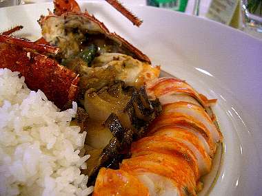 ☆今日はクリスマスと言うこともあり、チームの皆さんとめったに食べられない?かなり食べている人もいますが・・・。゚*+。。+*゚゚*+。。+*゚--☆今日Xmasのランチ☆--「伊勢海老とアワビのスペシャルカレー」10,500円By 資生堂パーラー 銀座本店゚*+。。+*゚゚*+。。+*゚さすがに 1万超のカレーはおいそれとは手を出せない価格で、食べたことはないだろうと、話の種にと思いチームの皆さんとクリスマスランチです。予約してある時間に着き1Fでエレベーターに乗り、緊張の面持ちで 4Fの店内に。周りを見渡すと、ハイソな感じのお客さまでほぼ満席状態。みなさん全員、このカレーを注文。まず、最初に"薬味" が銀製のタワーで席の前で豪快にフランベの後、カットされお皿に。調理中、磯の香りが席まで漂うのがなんともいえず。(磯の香りがダメな方はご注意を!)フランベのブランデーは、カミューのVSOP。伊勢海老とアワビのスペシャルカレー ライスサラダ、コーヒー付き10,500円主役はもちろんこの2品。脇にライスが添えられて。別に銀製のお皿で、伊勢海老の味噌入り、とろみの強いカレールーが登場。まずは、伊勢海老を一口。身が締まった大ぶりな海老は適度な弾力で美味い。つぎに、アワビを一口。柔らかなのに適度な弾力でこちらも文句なくおいしい。カレールーは、コクのある上等な感じ。が、漂う香りが「磯」なので「ミソ」 独特の微妙な味が・・・カレーの味で・・・ まさしく「ネコに小判」 2000円ぐらいのカレーと区別がつきません。(笑素材もすばらしく、伊勢海老とアワビのカレーソース"添え"と、思えば納得の逸品。なぜ?、この素材にカレーなのかは・・・素直にグリルでも良さそうな・・・ごちそうさまでした。メニューの中で、たぶん?このカレーライスが二番目に高いです。ランチのコースでも高くて8,000円他のカレーは (一部)ビーフカレーライス 2,940円グリルした野菜のカレーライス 2,620円トロトロに煮込んだ三元豚のカレーライス 2,830円資生堂パーラー その他 のメニュー はこちら今日のランチ代 9人分伊勢海老のカレー ¥10,500 X 9オードブル盛り合せ ¥2,520 X 9Wine ボトル ¥3,800? X 3それから下のサロンド・カフェで パフェ に サンデー など女の子たちはきのうで、今年のお仕事おしまいです。来年もまじめ?に働いてもらいましょう。それで良いです。みなさん、クリスマスの良い思い出になったと思います。 私の思い違い??資生堂パーラー 銀座本店 東京都中央区銀座8-8-3 東京銀座資生堂ビル4,5階 11:30~21:30 第1・3月曜日 休み゚*+。。+*゚゚*+。。+*゚きのう、クリスマスは、たくさんのお友達が来まして飲めや歌え?(Wii です) の大騒ぎでした。結局、途中?で、当然ですが帰った家族などもいますが楽しい宴は 02:00 ぐらいまで続き女房のお弁当教室のお友達が、飲みすぎのため 3名ほど帰宅不能の、終電終わり で、お泊り。 只今、頭が痛いと言いながら、お風呂から出て女房と 8人分の食事を作っていますよ。(笑Wineだのバーボンだの 空き瓶が凄い!我が家の貯蔵のお酒、ほとんど飲まれました。今日は食事が終わったら、庭と家の廻りのXmas 関係のイルミの取り外しです。年賀状も書かなくては・・・息子の写真を載せるか、載せないかで、もめそーう。あっ そうそう、Xmas プレゼントですが息子からは「たばこ」を、女房からは 「カフスボタンのセットとネクタイ」 を、もらいました。それではSee You LaterGood bye!By ken455o^o---