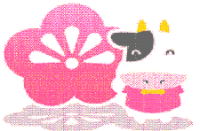 今年は、ピンクのウシの置物を北と西に飾ると良いんだそうな。(by Dr.コパ)