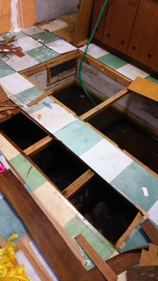 カルロスゴーンさん保釈されましたね。でも何で変装してたんだろう?? 長岡way です。 朝エクストレイルに乗ろうとしたらエンジンがかからない!!! バッテリーがあがったようです。 やらかした~~~。 諦めてフィットに乗って出掛ける。 バッテリー交換かな~。 明日見てもらおう。 予備の車があってよかった。 1万円物件のリフォーム。 脱衣場と台所の壁のペンキ塗りが終了したので次は床。 そう思って台所の床下収納のとこを開けたら。 なんと!!! 水が!!! 一昨年の寒波で台所の水道菅が破裂したのは聞いてました。 床がブヨブヨでしたがここに水が溜まってるとは。 水抜きです。 魚が泳いでなくてよかった(笑)