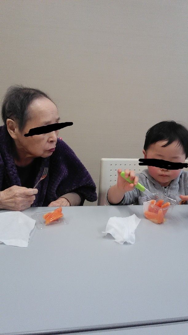 祖母に会いに行く。果物、おせんべいを食べる。