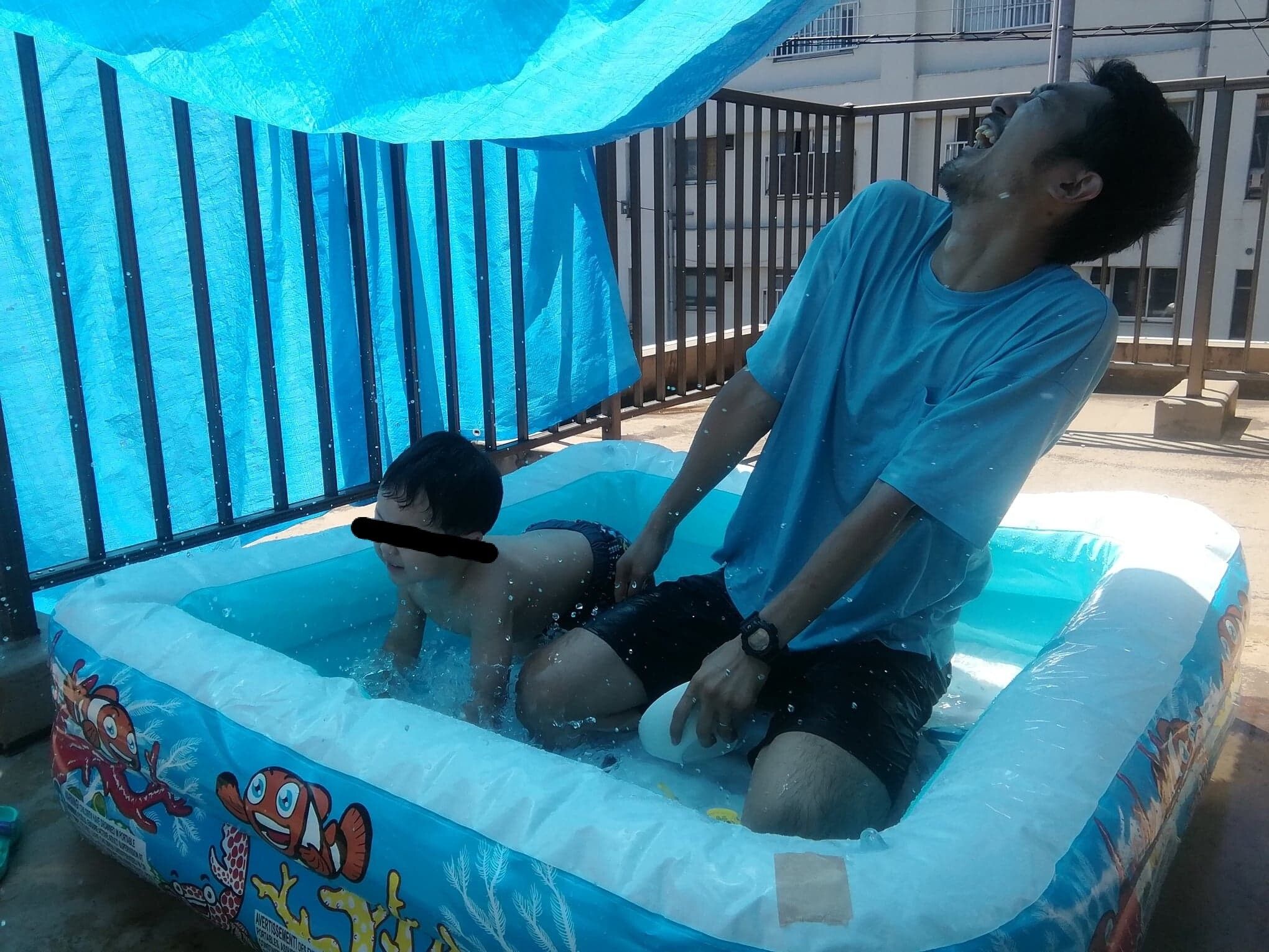今日は暑かったので自宅でプール遊びをする。