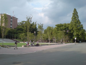 ここはどこでしょう?公園ですか?といわれそうですが、今日、出張してきた関西大学のキャンパス内です。学生さんがでかい一輪車に乗っているのが見えますでしょうか?最近、大学は学生募集の観点からもキャンパス整備も大事なポイントのひとつとなっています。関西大学は、歴史ある名門校で、古い校舎と新しい校舎が入り混じっていて、趣があるキャンパスになっています。しかし、大阪暑かったな~(^_^;)