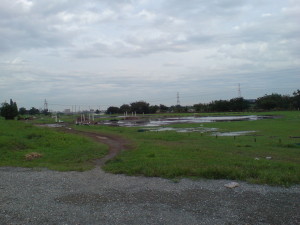 台風が過ぎ去った後、多摩川サイクリングロードはどうなったかと思い、夕方府中・稲城周辺をロードレーサーで走ってきました。サイクリングロードは大した被害もなく平穏でしたが、野球グランドやサッカーグランドは壊滅的な打撃を受けていました。ここは2週間前までは、きれいに整地されていた野球グランドでした。ネットが流され、土も掘り返されていました。ごみも流れ着いていて、方付けはこれからといったところでした。それより、ごみが流れ着いていることによって若干悪臭が・・・。一日も早く復活を期待したいものです。