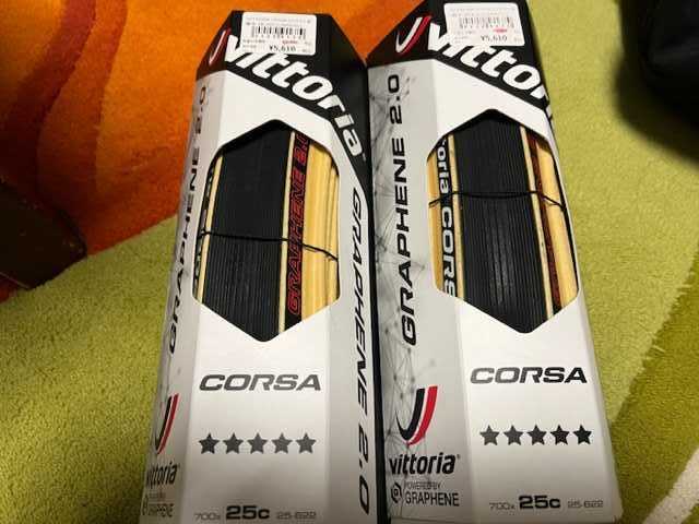 オープンセールでVittoria corsa G2.0をほぼ40%オフの1本5,610円でゲットしました。