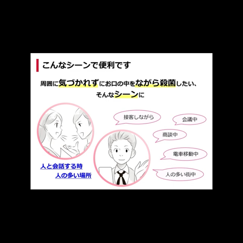 水なしでどこでもさっと使える口中殺菌トローチです。上あごに貼り付いて、周りに気づかれずにお口の中を殺菌・消毒できます。スリムでおしゃれなアルミシートは持ち運びにも便利なんです。