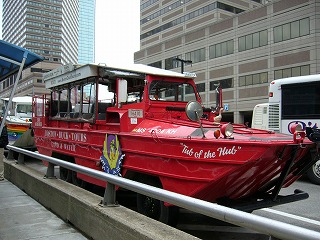 はい、昨日本文書き終わって写真を用意してるときに間違って終了しちゃいました。あらためてかきます。でもだいぶ短くなってしまうような気が。。。。。。(;^。^A アセアセ・・今回の旅行であったトラブルを。 ボストンについてダックツアーなる水陸両用車でのツアーに行きました。 なかなかの人気らしく、友達いわく当日取るのは大変だから予約したほうがいいよ ってことで、事前に電話で取ってもらいました(電話できるほど英語できません。。。 で、朝9時半出発だったので、20分前について、受付っぽいところで 俺 「9時半からのツアー予約してる○○ですけど」 スタッフ「ちょっとまってくださいね」 「ん?名前無いですね~」 ( ゜ ▽ ゜ ;)エッ!! 俺 「インターネットで予約して、電話で時間指定したんだけど・・・」 って言えたかどうかはわからんけど、それらしい単語を並べて インターネットの予約したときの証明書を見せました。 スタッフ「向こうのビルに受け付けがあるからあっちに行って。」 ここじゃ処理しない!って感じでした。 時間も来てたし、遠くまで行きたくなかったから何回もおんなじことを 言ってると、別のスタッフが来て 「彼は証明書もってるし、OKにするよ!」♪わぁいヽ(oδ ヽ)(ノ δo)ノわぁい♪ って言ってくれました。 C=(^◇^ ; ホッ! 無事に乗れてよかった。 実際乗ってみると、英語はむっちゃ早くて冗談つき。 はい、全く理解できませんでした。 雰囲気を味わっただけです。 今度はもう少し英語理解できる状態で乗りたいなぁって思います。 さて、なぜ乗せてくれたかというと、小雨交じりの天気で寒かったし、 時期的な問題もあり、ガラガラだったんですよ。 1台あたり半分ぐらいの人しか乗ってませんでした。ww