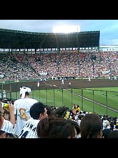 今日甲子園行ってきたよ。最初一時間ぐらい雨が降ったから激寒だったょ(;_;)でもやっと阪神連敗脱出だぁv(^-^)v俺の今年の勝率は10割ですと言っても今年初めて行ったんだけどね(-o-;)