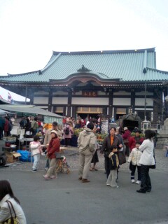 今日は、家から10分ぐらいのところにある覚王山日泰寺っていうお寺の縁日がありました。毎月21日なんて、日曜日に重なることはあんまりないので今日はすごい人がいっぱいでした。もちろん縁日の日は駅からお寺まで400mの参道にお店がいっぱい出ます。年配の人が多いだけ出に、そういう方向けの服とかおつまみみたいなものがいっぱい売ってます。お昼を食べにその辺をぶらぶらしてました。お昼は、お好み焼きと串かつとどて煮です。それから、デザートにはみたらしを食べました。どこも行列ができてて、買うのも時間がかかたよ。ちょいと食べ過ぎて結構やばいです。