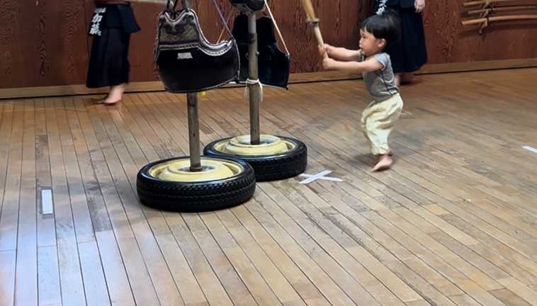 先月、やっと入会してくれて😝もう上手だから、昨日は面付けデビューしました^_^ー私が小学生の時と同じ順序ー体操服→小手だけつける(長め)→垂と胴もつける→面もつけるですね!最初の地稽古の相手は、お兄ちゃんに^_^皆んなには、「今日はふみやには打たせるだけで、まだ打つな!」と、言いましたが、 私との稽古では、いっぱい色んな技を打ってあげました(笑)