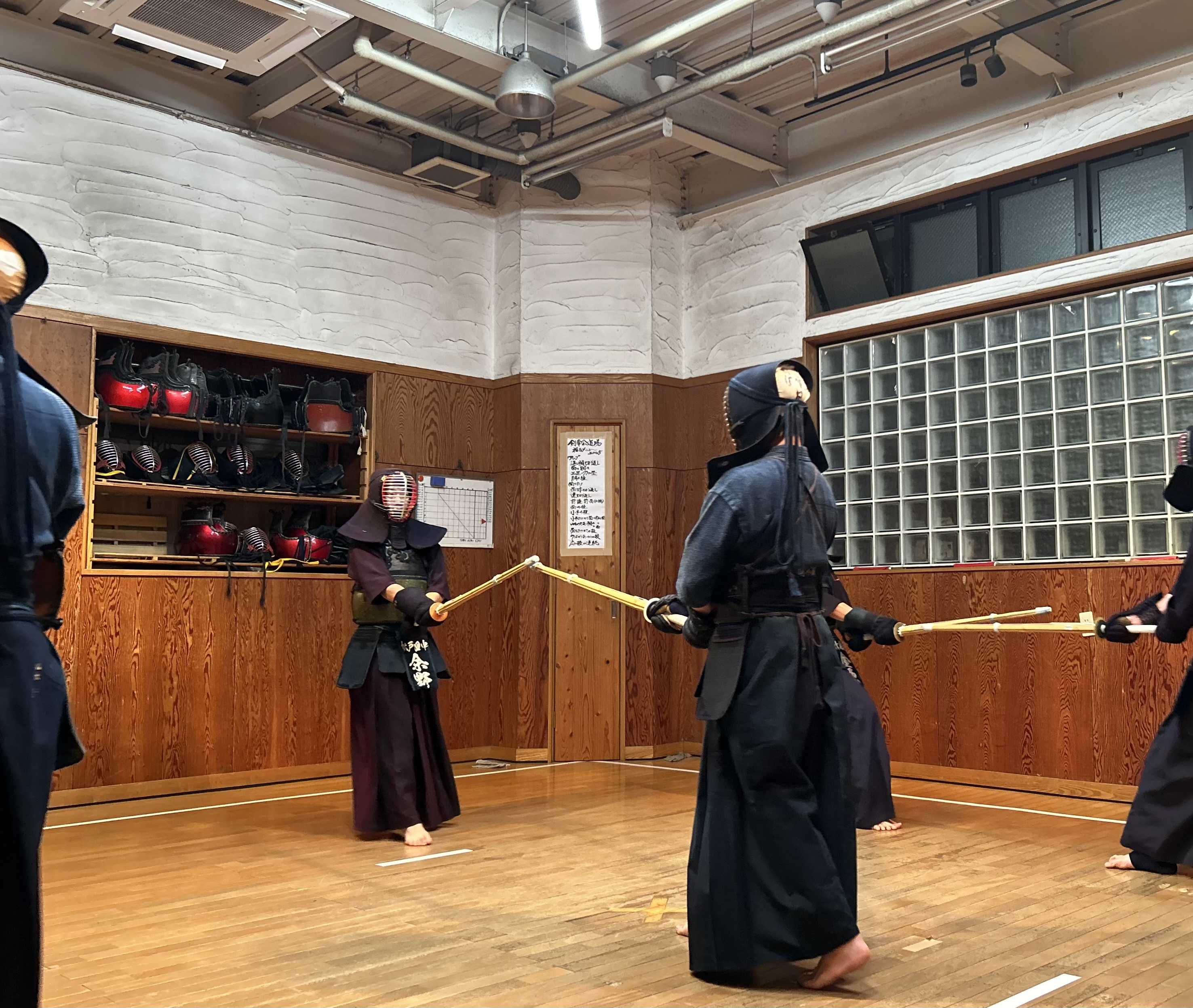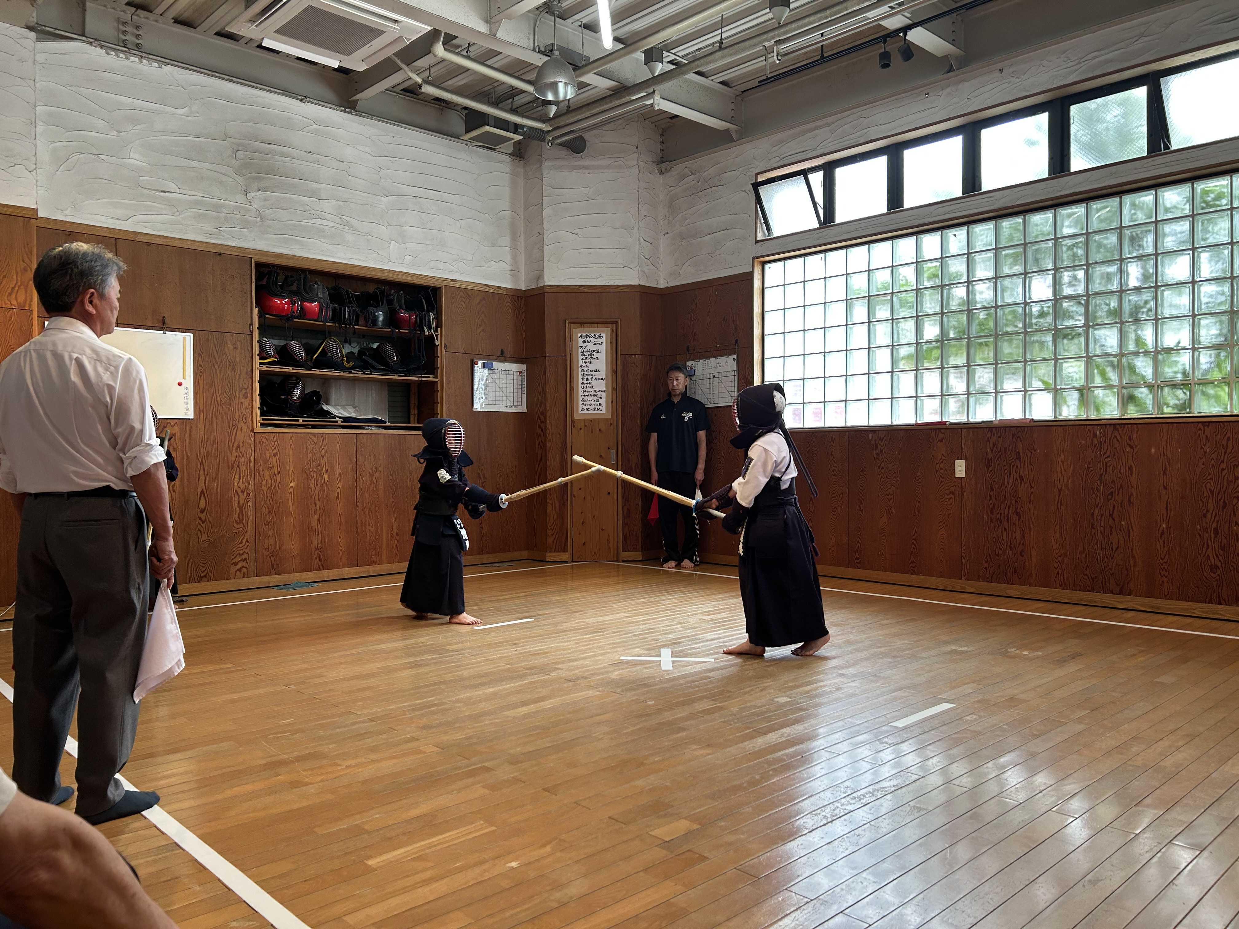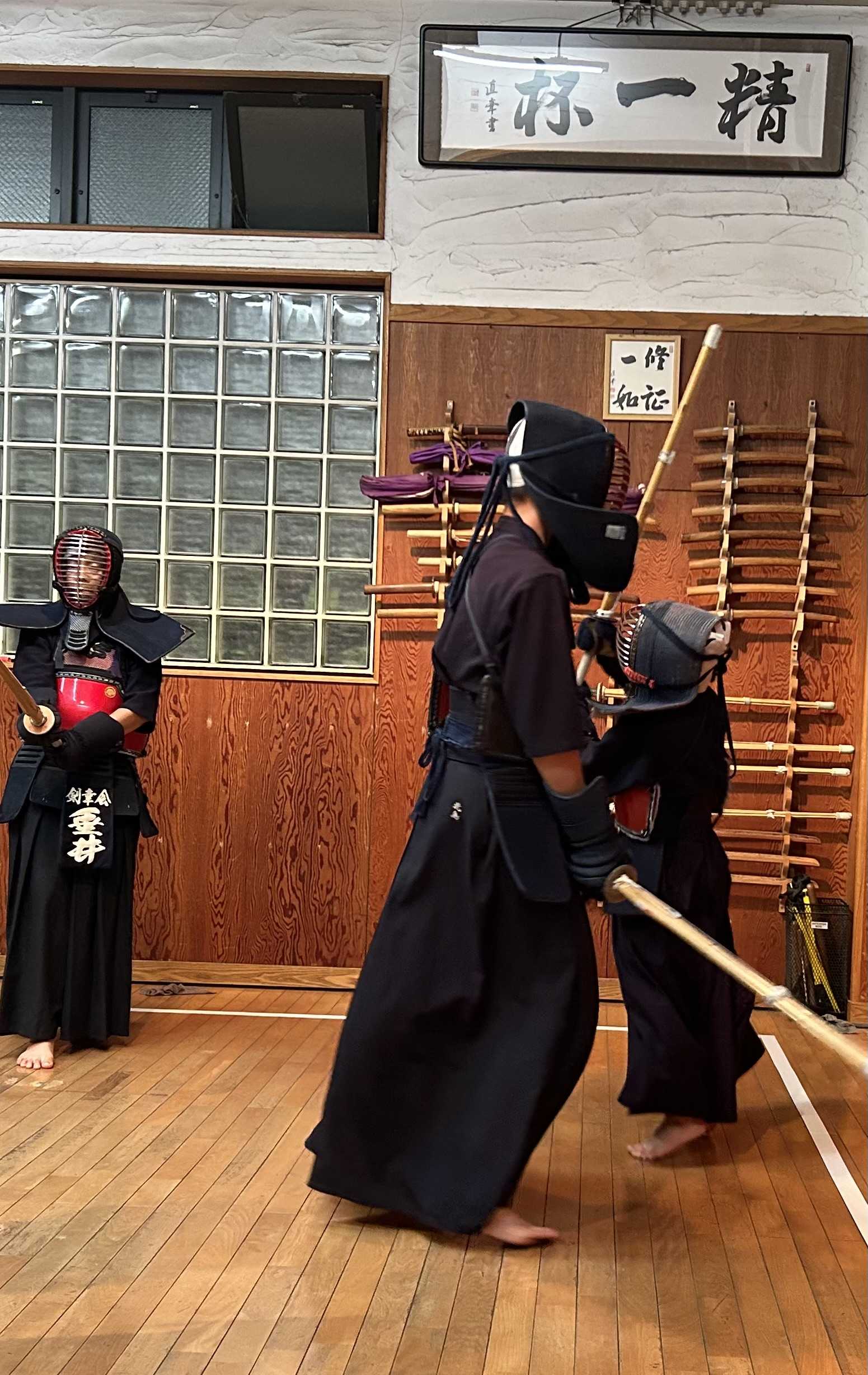 アキレス腱切断から先週水曜日100日ぶりに復帰してすでに昨夜で5回目の稽古攻め勝って打つから、攻め勝って乗って打つ(岩立先生の著書のタイトルですね!)そんなスタイルに自然と変化これは、さらに実力アップですねー遠くから、スピードと脚力で打つメンから、もう少し近間まで体攻めがあってメンという、こちら側からとしては、参った!と心を打たれる感じがします。昨夜の稽古より 愛、瑞歩と稽古中の貴之、亮平 私は、一旦休息中でした。冷房してても蒸し暑かったですね。 水曜の午後から右の背筋が痛くって、コルセット1枚増やして腰と胸の二枚で固めて稽古してました。コルセットって凄いですねー普通に出来ちゃうから小学生も、少し具体的な入りを始めてますので、変化してくれれば良いですね。私のやり方としては、本人が強く成りたいと変化するまで、放ったらかしで緩々にします。本人の意識が変わったら、細かく教えていきます。そこまで勝ち方とか一切やらないんです。そう感じる子が沢山できたら、団体戦も楽しみですね。いま小学生も中学生も2人だけかな🤔