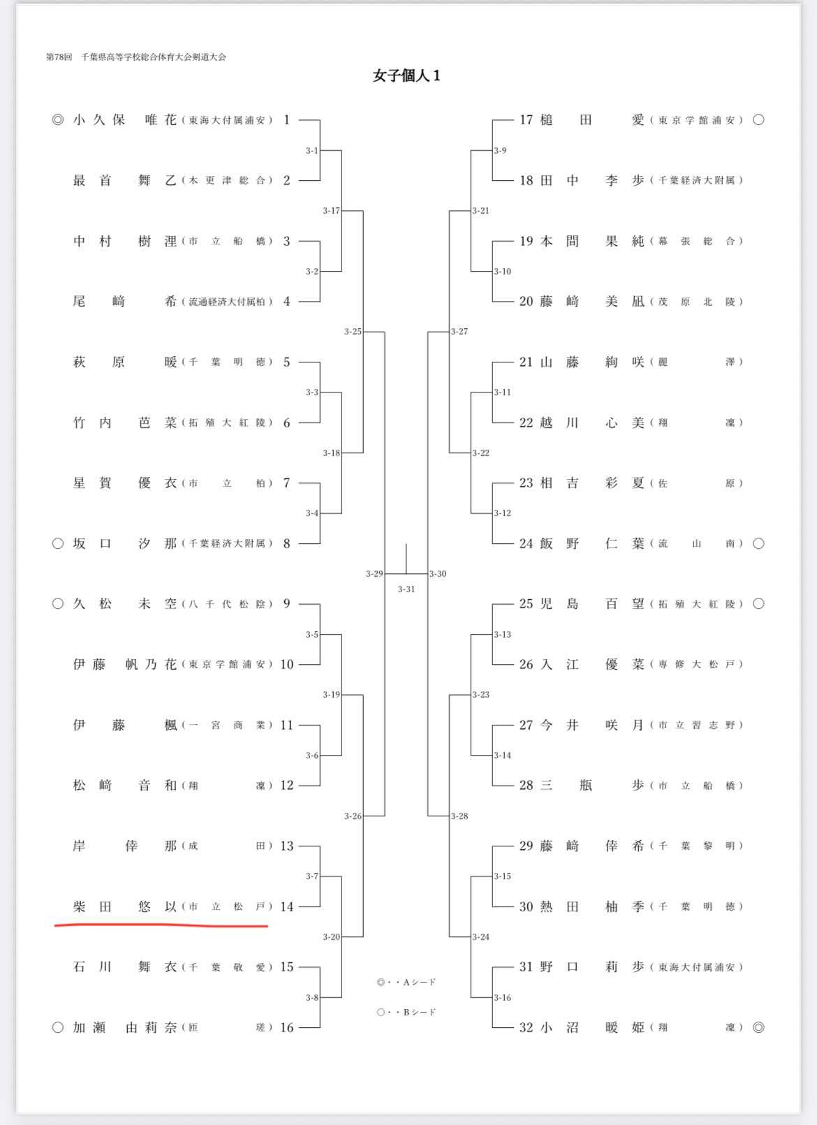 ◉女子個人戦(地区ブロック予選があり、4人県大会に出場です)悠以(現 高校2年生)は、ご存知のとおり中体連は所属しないで、道場から地域枠で全中予選の県大会個人に出場(第1号)してます。2年前ですね。高校からは剣道部です^_^ 頑張ってネ‼️ ◉男子個人剣幸会からの出場がいないので省略します中学高校一貫の翔凛や東海大の私立以外は、トップ選手が沢山県外に流出してる関係で、あまり知らない選手がたくさんみたい🤔◉男子団体戦◉女子団体戦 千葉県高体連ホームページがリニューアルされましたhttps://www.chibakoutairen-kendo.com/