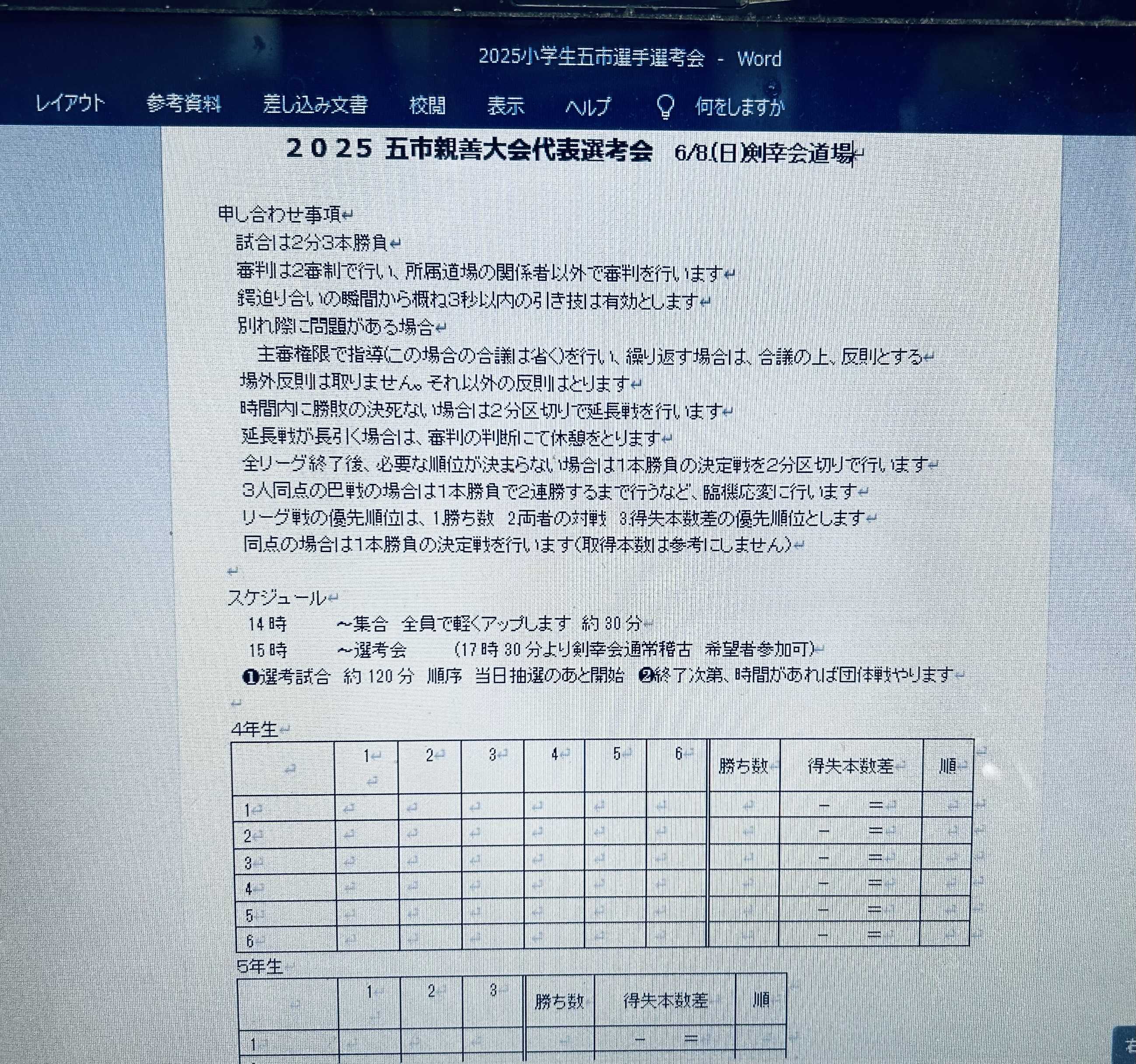 中学生男子チーム、女子チームは茨城県へ小学生高学年チーム、低学年チームは埼玉県へ私は、小学生高学年の監督で、6月の桶川は久々です中学生は、残念でしたー 代表戦敗退の敢闘賞 本日は、1年、2年、3年でメンバー組みました 小学生は、剣幸会➕松戸市小学生強化活動東警察2名と剣幸会8名で、高学年・低学年2チーム参加しました松警の達家くんも、都内の強豪団体から出場していて対戦がありました4チームリーグで上がり下がり方式高学年は、東松舘リーグから始まり2位スタート、二次、三次リーグ、最後は第3試合場で終了でした最後の四次リーグでは、蔵志会、大義塾、大利根さんと内容の濃い対戦が叶いました^_^低学年は、昭島リーグからはじまり、なかなか苦戦しましたが、それぞれ個々に良い試合もあったようですね 高学年、超強豪チームは、正に正剣。中心を攻め、捨てきってきます。誤魔化しやフェイントするレベルは既に卒業済みで、次のステップに入ってます。勿論、正剣は打たれますし、当てにくい。でも、思い切って捨ててきますよね。そういうとこ、口で何度も言ってもなかなか理解しようとしないんですが、肌で感じるでしょ。それを感じてどうするか?分かれ道だと思いますよ🤔来週は、剣幸会道場にて、五市大会選手選考して、あと2名の選手を決めることになってます後日詳細は皆さんにお伝えしますが、集合は2時ですみんなが揃ったら、アップをして、3時ごろから、4年,5年生のリーグ戦をゆっくり進行させる予定です🫡5時頃終了予定5時30分からは、剣幸会通常稽古時間になりますが、希望される強化選手は、誰でも自由にご参加ください(強制ではありません)駐車場は、なるべく近隣の駐車場をうまくお使いください。