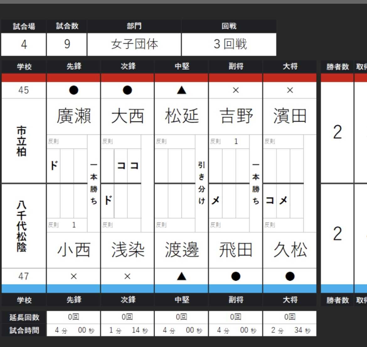 優勝は、 男子 中央学院 女子 翔凛成菜は不戦勝のあとの3回戦、先鋒で出場でしたが、なんとも残念な逆転負け不完全燃焼でした今更ですが、亜衣が退部してなければなーです😅 悠以は大将メンバーが揃わない学校との組み合わせでしたがベスト16まで順当に進み4回戦へ。最後は流れがあちらでしたが、川村さんには勝って欲しかったな。松警時代や竹の塚警察の小学生時代には、何度か対戦してましたしね。 東海大浦安女子は次の5回戦(準々決勝)敗退でB8 男子決勝は副将で決着 翔凛は準決勝で東海大浦安に代表戦決着。秋元くん(周南出身)が小久保くん(南武館)に負けちゃいました 稲垣くん(松戸東警察出身)おめでとう㊗️ 女子は私の予想通りだったかな🤔翔凛が圧勝でした。2位に拓大紅陵。市船橋は東海大浦安戦のあと拓大に敗退で第3位。ところで、進学校では大所帯の男子幕張総合なんですが、、一年生大将で悠希が出場。(剣幸会からの大将は教伍、鼓太郎は3年間、少し開いて、悠希で5年目になります)3回戦で大将戦前に敗退が決定という予想外の結果でベスト32。泉水くん(周南出身)も一年生だし、2年生達は伸びてないのかな。。次の試合(春の関東予選)もノーシードで厳しい戦いになりそう。奮起を期待します🤔