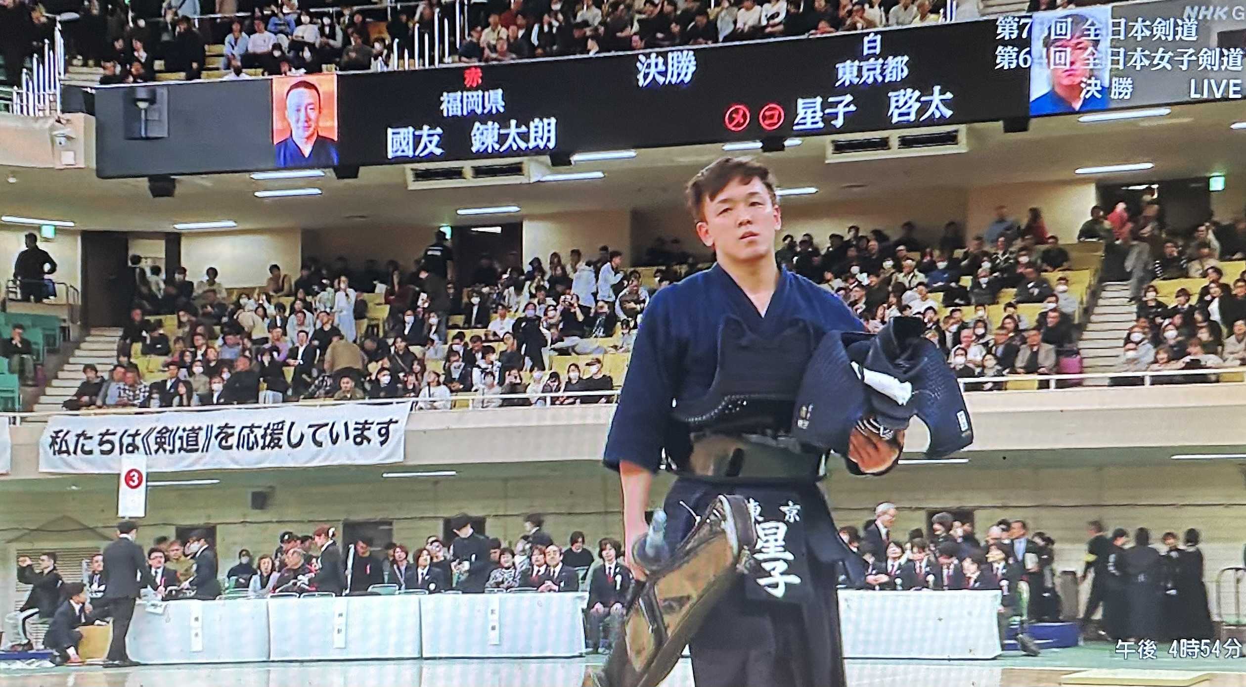 男子は星子選手女子は髙橋選手星子選手は、優勝候補の一番手だったんじゃないでしょうか、末野先生(鹿児島県吉野剣道スポーツ少年団)の教え子さんで、九州学院では同級生の梶谷選手と鉄壁の強さでしたし、筑波大でしたね。(私が高三の時、末野先生に剣道を習いたくて、鹿児島大学を受験しました(笑)けどね。歯学部不合格でした)髙橋選手は、新潟市の志学館出身で、うちの渡邉祐輔先生と出身道場が同じです。小杉館長とは、倉澤先生繋がりでよくご一緒させて頂きました。渡邉先生とも彼が学生時代、新潟遠征で稽古したのが最初なんです🤔燕中、守谷高校、法政大学とずっと日本一ですね。洋介の一つ下の学年で、一度千葉県に見えて、鬼倉道場で剣幸会と志学館の3団体で練習試合をしたことがあります。剣幸会の中学生達は日本武道館で観戦でしたが、私は自宅でTVでした。昨年に続き、準々決勝までは男女同時だったのかな。。ちょっとTVではみたい試合が見れなかったりするけど、スーパースロー再生もあって、技前の竹刀の軌道がじっくり見れて、以前より分かりやすかったです。軌道はすごいですねー 攻めて相手を動かすところ❣️一番の勉強するところですね❗️ 今回、光龍舘の森本選手や、おもちゃのまちの松井選手が初出場されました。おめでとうございます㊗️