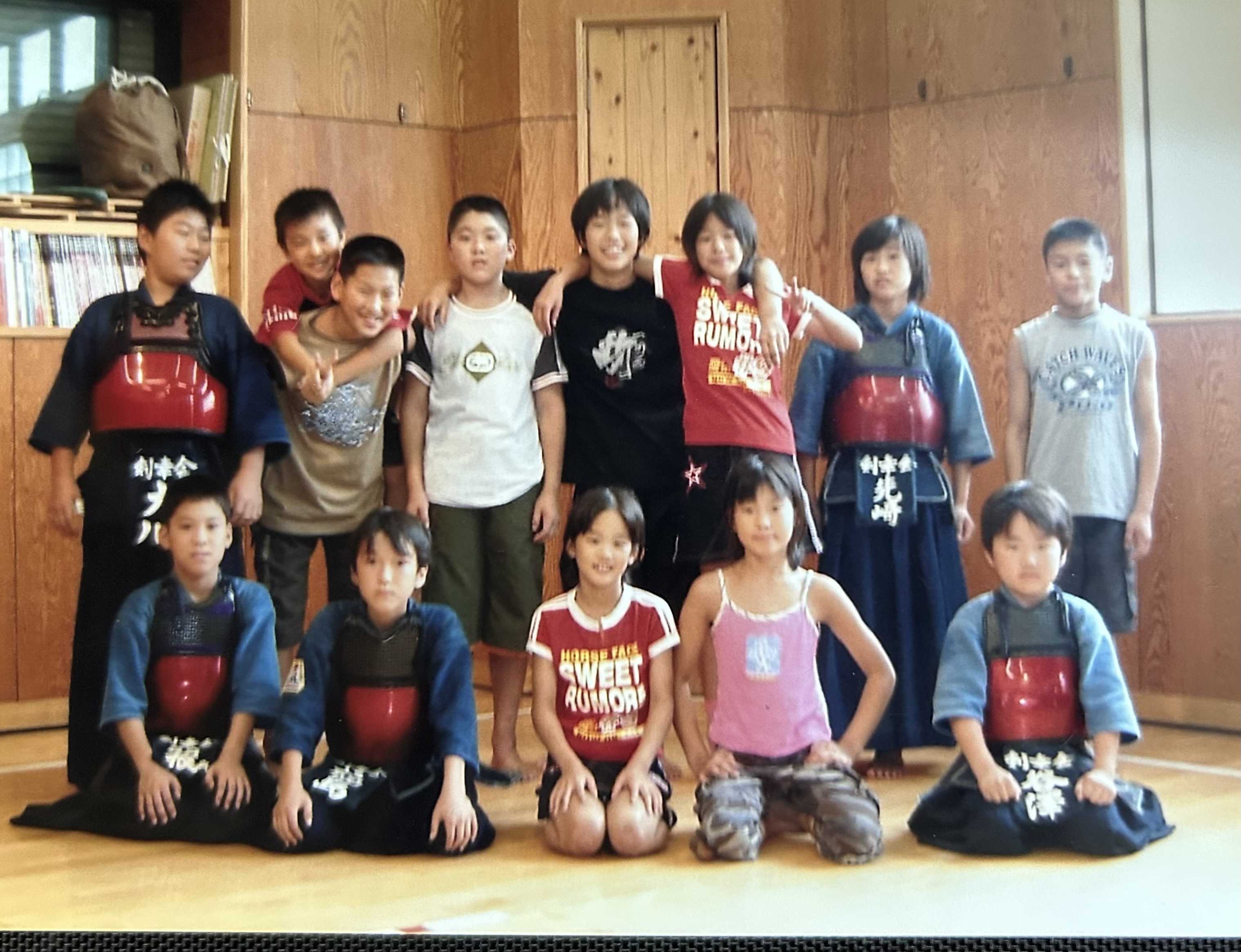 光龍舘が初めて来館した日(翌日、日本武道館で最初の日本一になりました。後列左から2番目が大将だった森本くん、今年の全日本選手権大会に初出場されました。西岡くん、安田さん、伏見くん、和田姉妹、森本妹さん、洋介は6年生だったけど、小さかったんですよ。前列左から2番目)翌年夏の全国大会前日は東陶器春風館と光龍舘が来館(辻田先生は195センチなので企画外でしょ^_^ 右端は福島館長、隣りで祐輔に抱っこされてるのが、今年稽古に来てくれた岩部光くん❗️最前例右端の洋介の隣りは、今、道場に戻ってきてる平井貴之) 一年飛んで、3回目の夏の光龍舘来館ですこの時は、剣幸会も千葉県全国予選3位通過、谷澤颯太が不動の大将として復活しておりました。(前例左端に土居さん、現在金沢高校女子剣道部を毎年全国大会に導く名監督です。岩部先生の隣りの八木くんも警察特練選手として活躍中です)
