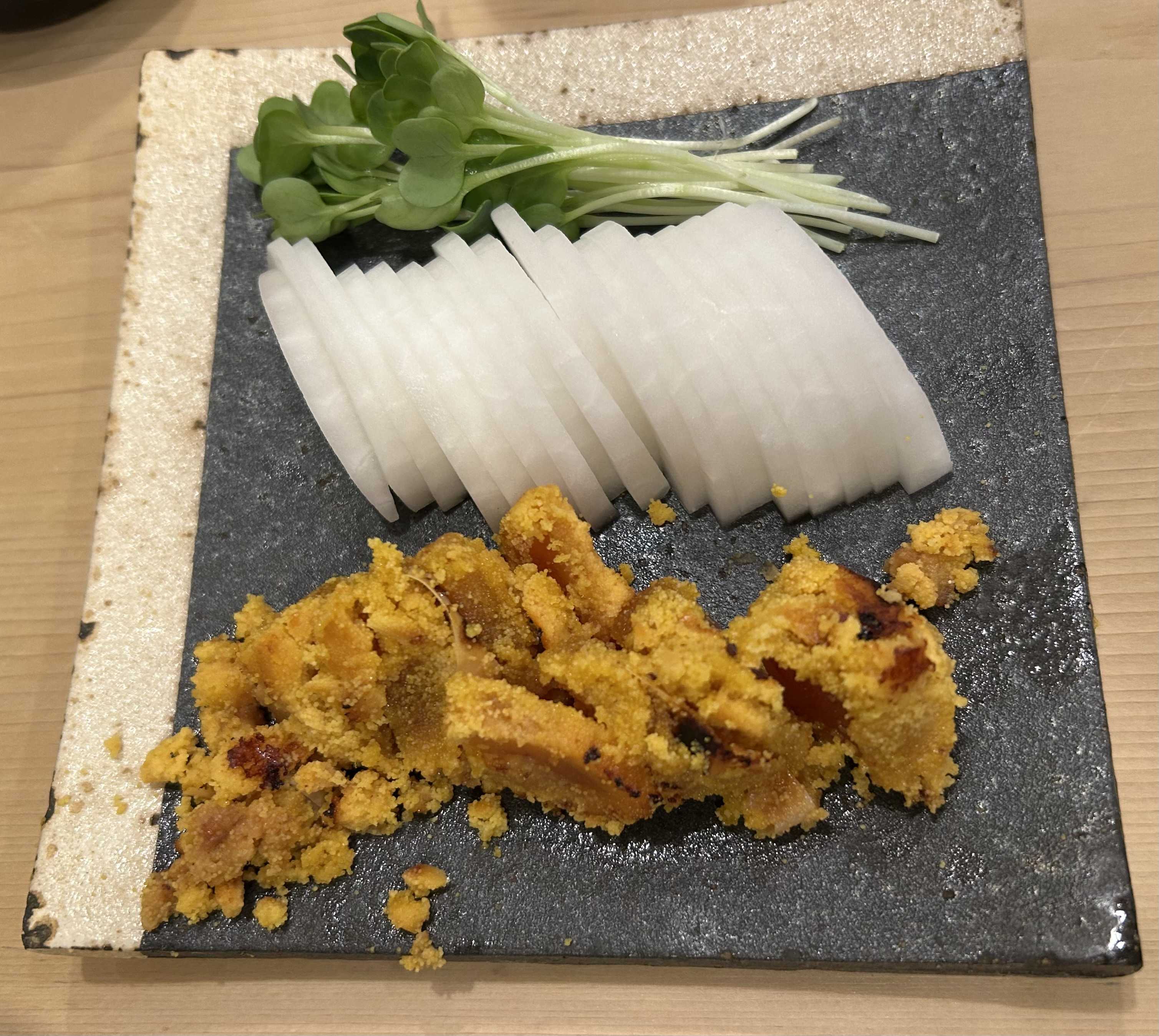 🎵僕の好物のからすみをー 手土産にとくれたのに わざわざ煮てだめにして〜百万石のからすみ感動しますワー 是非、食したいと思って伺いました^_^ちょっと焼きますか?はい!って焼いた味噌がまた美味くて、日本酒に合います^_^勿論、お刺身とお寿司も頂きました最後のかんぴょう巻きもまた食べたいなー