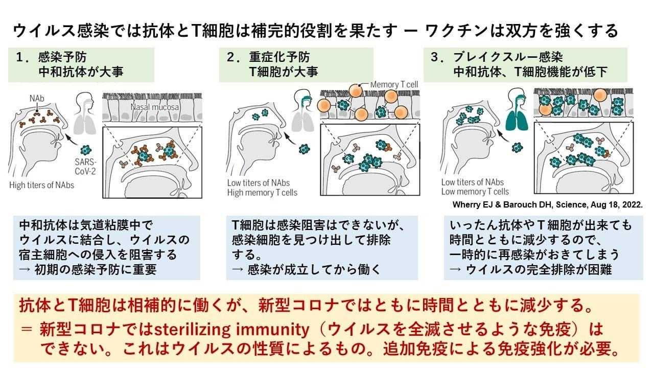 この二本立てですね!しかし、量が減ったり、ウイルス量が多すぎるとまけてしまいブレークスルー感染となるという仕組み。
