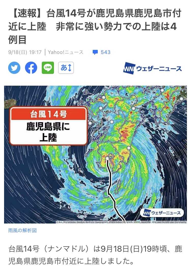 強烈な台風が鹿児島に上陸。被害がなければよいけど、、。935ですから。