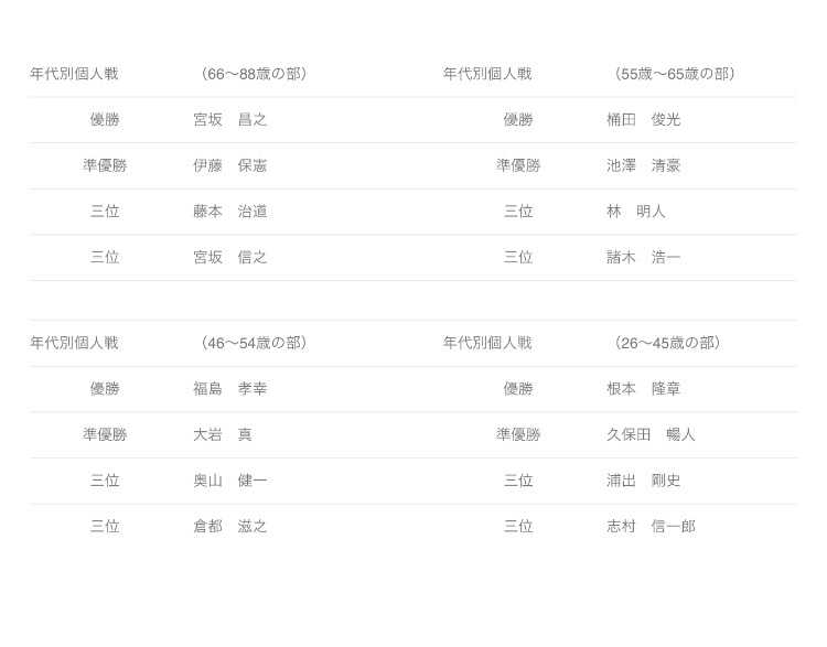 そして、第50回記念で開催された全日本医師剣道大会(京都)年代別個人戦の結果です。8年前ですね。