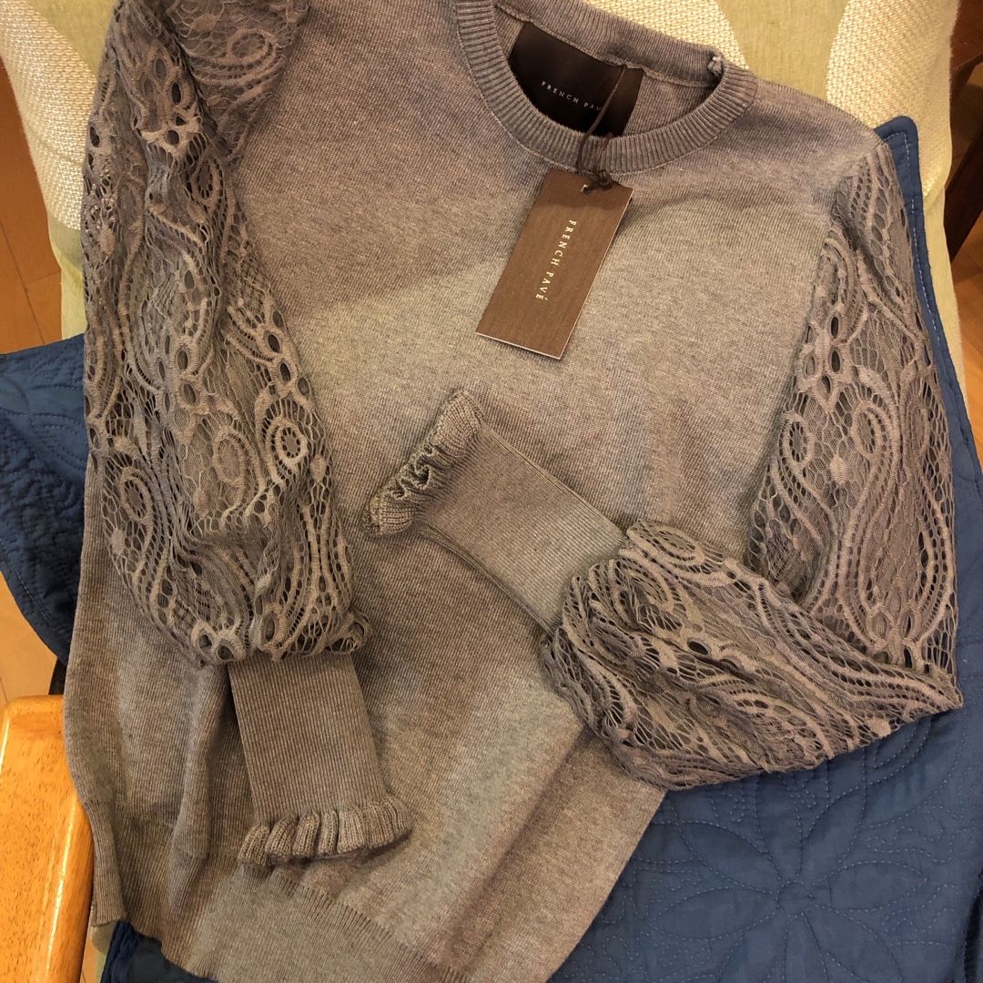 買っちゃった 買っちゃった でも暑いから 😅 来年用かなーーー笑 □□(L2Lサイズ登場)(S~M/L~2L対応) 【再入荷♪4月1日12時&22時より】(グレー)「FRENCH PAVE」心奪われるエレガンス。シアーレースのポワン袖ニットトップス ぽわん cawaii 他にはないカワイイが見つかる
