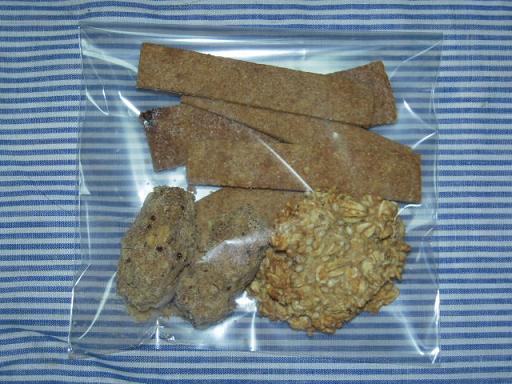 娘の今日のお弁当(雑穀ごはん+豆腐そぼろ・ブロッコリーのマヨ焼き・ピーマンの塩きんぴら・豆腐入りハンバーグ・さつま芋とかぼちゃの素揚げ・厚揚げと卵の煮物)昨日、夕方~7時半くらいまでバイトで、帰宅したら娘が「明日お弁当いる~」と急に言い出して、慌てて冷蔵庫あけて考えました。日曜市で買うつもりなので、スーパーに行っておらずで食材乏し。冷凍庫にあった、先日の豆腐入りハンバーグがメイン。厚揚げの煮物は前夜の残りです。↑昨日、東京の知り合いに色々詰めて送りました。画像は、黒豆ガトーショコラ・おからクッキー・人参プリッツ・メープルクッキー・神山のハチミツ・切り干し大根・焼き海苔・わかめご飯の素など。後、よつ葉シュレッドチーズに米味噌など冷蔵品も少し。旅先で知り合ったご家族の方なんだけど、ブログ見て卵とお味噌を送って欲しいと連絡があり、卵は直送で手配しました。お味噌は実家に帰った時に持ち帰り、折角だからと色々詰めちゃいました。ほんとに適当なパッキングで、中身も田舎の母ちゃんが上京した子供に送るような内容ですが(苦笑)徳島の味!とまではいかないけど、私の好きな物食べて欲しい~って。まして、遠い遠い東京だからかな。。そう言えば、昔オークション始めたての頃、他県の落札者の方に商品と一緒に「金長まんじゅう」やら数個入れて送ってました。ネットで遠方の方とご縁ができるなんて、不思議な感じがしてね・・けど途中で、ありゃ、これでは何しとるかわからんやん!と気づいてやめましたが米味噌は、味噌屋さんから味見してみてって、1袋頂きました。大豆がちらほらで、後はほとんどお米。とっても綺麗な黄金色?のお味噌です。それを4つくらいに分けて、何人かにあげようと思っています。その1つを入れてみました。次回のセミナーで味見してもらえたらなって思っています。忘れてたりして・・・。↑ゴマソーセージ食べかけの画像で申し訳ないです。ポスティで買ったものです。子供と旦那はウィンナー好きなので、時々2袋セットのを買うのですが、たまに変り種のスポット商品も掲載されています。私は肉類を減らし始めてから、好きだったソーセージも全く欲しいと思わなくなって、滅多に食べないのだけど・・。これは美味しい!燻製したって感じの風味と手作り風の食感、しっかり詰まった固めのソーセージです。ちよっと高めだけど、旦那とのお昼用には問題ないかな。子供はいつもので~