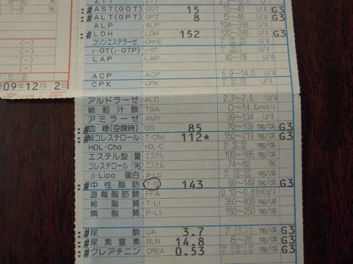 昨年、誕生日の節目にかな~り久し振り(妊娠中以来だから11年以上前)に血液検査をしてみました。アトピー以外は健康に自信はあるものの、過信はしてはいけないと思ったので。病院行かない人ほど大病が見つからなくて手遅れ・・なんて話もよく聞くしね。結果は先生から「全く問題なし、すばらしいです」の一言良かった~。けど気になったのが中性脂肪の数値。範囲内ではあるけど、ぎりぎり収まってる数値です。丁度食制限もして体重も減った時期なのでどうしてか?って。先生は、ここは遺伝的なこともあるので気にしなくて良いと。他の数値もいいし、問題ないですと。ちょっと疑問が残るまま、まあいっかと帰宅しました。その後、玄米酵素の講師と会った時に中性脂肪について聞いてみました。数値が高めな事と酵素飲んでる人はよく中性脂肪減ったと言う声を聞くのに、なんでかなって。そしたら、きつい食制限をしてると体が脂肪を蓄えようとする働きが強くなるからだろうと言うことでした。それで納得~でした。高くてもまあ正常値だしね。総コレステロールが低いのは、これも食制限かなりきつくしてた時期だからかなって思います。低くてもこの程度なら問題ないみたい。また機会あれば検査してみよう~。↑悪玉コレステロールの数値これも低すぎだけど、問題はないそうです。さて、最近忙しくて更新できず。。食事の画像も撮れてないです。昨日は、切り干し大根とミネストローネと焼き鮭(変な組み合わせ?)一昨日はポトフだったかなぁ。ポトフは最近私が好きでよく作ってます。人参が甘くて美味しい♪小さいの買ってきて丸ごと入れちゃいます。子ども達の小学校と中学校の学級閉鎖は終わり、子ども達のぐ~たら生活も終わりました。小学校なんて2学年以外は全て学級閉鎖の時がありました!けど、うちの息子・・学級閉鎖終了前夜に頭痛・喉の痛み・咳・微熱があり、しんどいと言って7時から寝てました。まさかインフルエンザ!?どこも行ってないのに?とりあえず、グルカン・霊芝とビタミンCを飲ませて寝かせたけど、夜中触ったら8度はあるような熱さだったし、皆勤賞もストップかな・・と思ってました。そして翌朝、熱は36.8度とやはり少しあったし、体も本調子ではないみたいだけど本人が行くと言うので車で連れて行きました。途中で呼び出しあるの覚悟でしたが、大丈夫だったようで下校時お迎えに行ったら元気でした。平熱よりやはりまだ少し高いんですけどね。休まず行ってくれたのも良かったけど、インフルエンザでなくて良かった♪来週はセミナーも控えてます、インフルエンザになんてかかってる場合でないわ~。