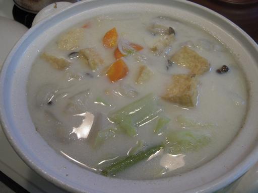 昨夜は久し振りに豆乳鍋を作りました。簡単で美味しいのよね~。肉も魚もないけど、出汁が美味しいので子供達も文句言わず食べてくれます。昆布とかつおの出汁に豆乳と塩と味噌と醤油で味付けします。具は、大根・かぶ・人参・シメジ・京ネギ・タマネギ・ジャガイモ・サツマイモ・厚揚げ・太切り切り干し大根を入れました。具を食べきったら最後のお楽しみ♪パスタを投入!乾燥してるまま入れて、出来上がる頃には出し汁もなくなりかけてクリームパスタみたいになります。土鍋は空っぽになります♪↑義母の誕生日にプレゼント元旦が誕生日なんだけど、私は実家に行ってていないので31日にプレゼント。またまた前日急にお願いして作ってもらいました。お正月テイストも入れてもらいました~。義母は玄関が華やかになったととても喜んでくれました♪↑今日の昼ご飯キノコのソテー・ほうれん草のおひたし・だだちゃ豆の冷や奴・ごまソーセージ・みそ汁・ご飯です。いつも代わり映えしないですね~。さて、アトピーの方は実家に帰ってる間にかなり良くなりました。やっぱりゆっくりしてストレスない生活が効きますね~。実家はお正月でも忙しいから、元日はお雑煮以外は買ってきてるオードブルセット。今の私にはあまり食べない方がいい物ばかりなので、なるべく野菜物食べて(それでもかなり甘かったりでよろしくなさそうだけど)ハイゲンキも増量して過ごしてました。昨日は子供のたっての希望で、佐世保バーガーを買って食べました。私もちよっと気がゆるんで食べちゃいました。とりあえず一番ノーマルタイプ食べたんだけど・・後でなんだかお腹が重くてもやもやでした。やっぱりきつかったのかなぁ。けど、美味しかったですよ~。パンも表面がちょっとカリっとして食感も良かった。ほんとは息子がマクドナルドとうるさかったんだけど(なにやらおまけが欲しいらしく)今は目を治す為にできるだけいい食事にしなくてはいけないからと、マクドはやめるように言い聞かせました。代わりに佐世保バーガー食べさせてあげると言うと、すんなり納得しました。娘も以前から食べたい食べたいとうるさかったし。マクドよりはかなり美味しいわ~。けど、まだしばらくは食養生しなきゃね。あまり崩れないようにしなくちゃ。
