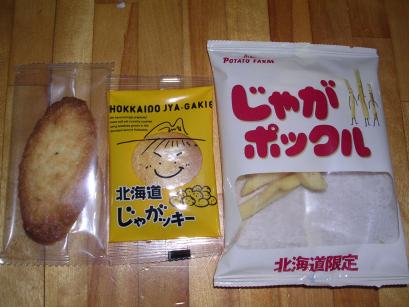 画像、左からじゃがバタークッキー・じゃがッキー・じゃがポックルです。