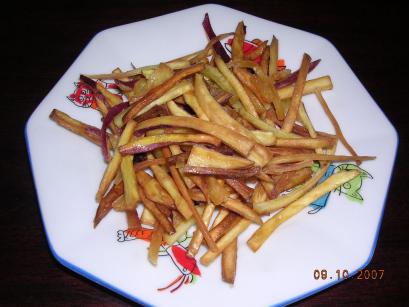 大きさ揃って切ってないので、ポリポリと揚がってる物や、大学芋の細い番みたいなの、その中間の食感のものといろいろ。