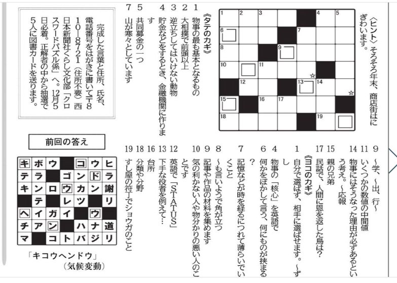 〇閲覧者の皆さま昨日11/2のクロスワードパズルですご応募如何ですか??今回分はヒントだけでわかりますね。明日11/4火曜日の日中に投函したら締め切りに間に合いますよ答えをはがきに書いて応募者の住所氏名等連絡情報も記載して宛先➡810-8721 西日本新聞社・くらし文化部「クロスワードパズル」係 へ どうぞ~~~~~~~~~~~~~~~~~~~~~~~~~~情報共有者→末次通訳事務所・末次賢治拝NOV.03 2025