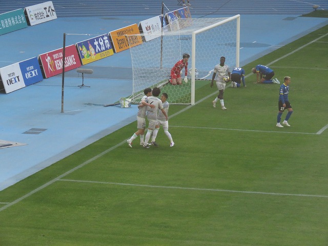 後半43分、左サイドを駆け上がる木許太賀選手からのパスを中央にいた鮎川峻が右足で決めて先制。