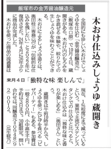 ◎10/4 カネヨシ醤油醸造元さまでの<蔵開き>イベントです◎閲覧者の皆さまイベントのご案内ですカネヨシ醤油醸造元さまにてのイベントですね!醤油を使ったピザのピザパーティ、食欲がそそりますね!!ご参加如何でしょうか??情報提供者:末次通訳事務所・末次賢治拝OCT01 2025