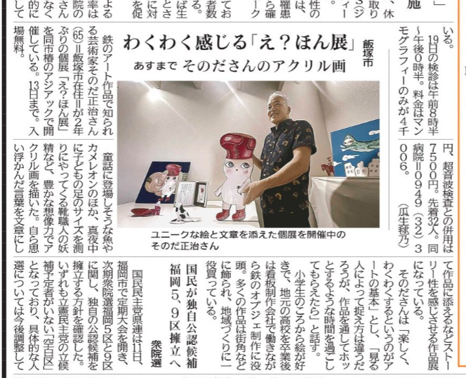 ◎明日10/13迄、鉄の芸術家・マサジ先生の作品展◎ご紹介飯塚市鯰田に所在の鉄の芸術家・マサジ先生の作品展です明日10月13日迄との事です詳細は、添付の記事をご覧下さいませご参考までにどうぞお時間がある方は見学に如何でしょうか??情報提供者:末次通訳事務・末次賢治拝//慈善事業部:10/12 2025