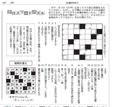 10/26日付西日本新聞からです:クロスワードパズル問題トライいかがでしょうか?? 先週分の答えは、キャッシュレスでした末次通訳事務所・慈善事業部/末次賢治拝080-6433-9523