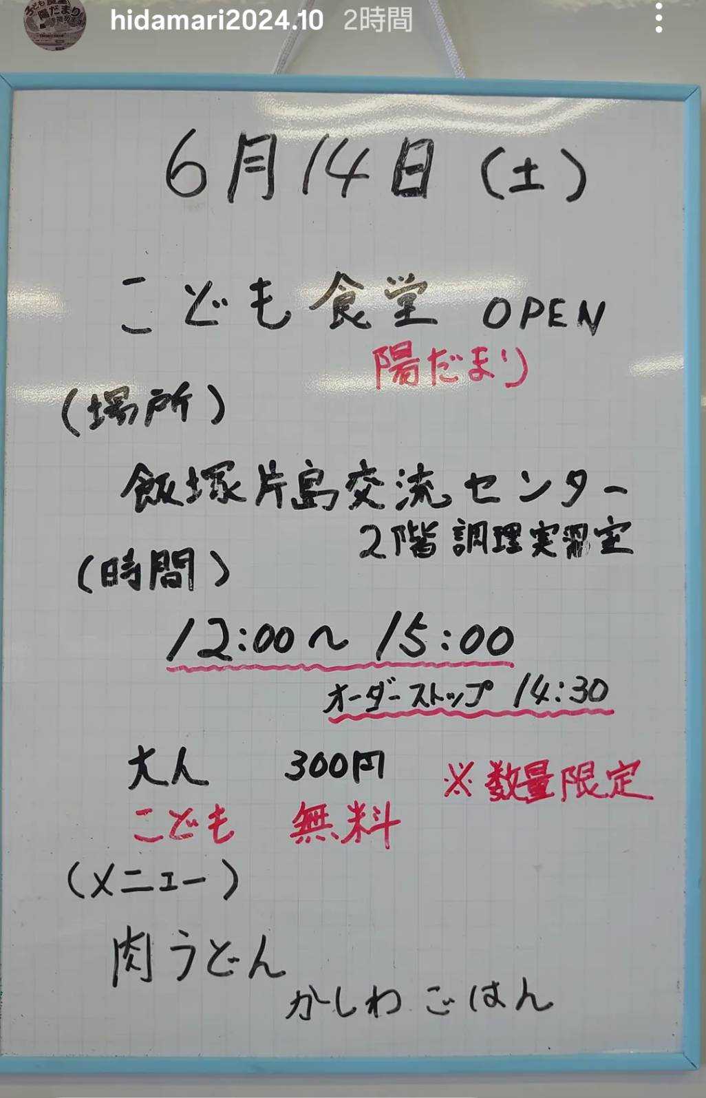 ◎ご紹介:陽だまり子ども食堂さまの10/11… 2025.10.12
