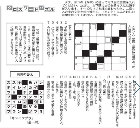 懸賞付きのクロスワードパズル問題 928付… 2025.09.29