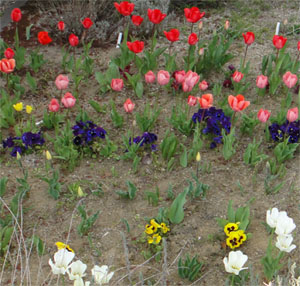 春の花壇の主役は、チューリップ。