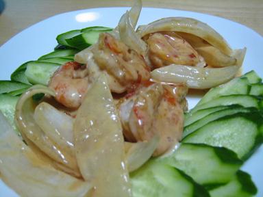お友達に頼まれごとをしましたぁ~『料理を教えてほしい。。。』って!なんでもいいから作れるようになりたいんだと・・・「いいよ」と軽く返事したものの『エビ料理がいい~ エビマヨがいい!』とキタよぉ~聞けばまったく料理をしたことがないという。正真正銘 料理初心者これは大変大丈夫だろうかぁ??? ちと不安!で、私は当日仕事を終えエビさんなどの材料買っておウチで待機。下ごしらえからすると張り切っていたので張本人の “ 彼 ” を待つことに・・・そう教えてほしいというのは私にとってかわいい弟分的な存在の男性なのでした。どうやら今はご両親と一緒に暮らしているが独り暮らしの計画をたてているそうで~料理も必要でしょということらしい。それに仲間が集まりワイワイする時等お酒のつまみぐらいはササッと作れるようになって皆にすごいと言わせ、場を一層楽しいものにしたいらしい・・・そういえば前回の飲み会を私のおウチでして総勢10人分の料理をほとんど私一人で作りみんなでワイワイした時から、とってもおいしいと料理を褒めてくれて“教えてぇ~”と言っていたけどまさか本気だとは思ってなかったのです~で、エビの皮を剥くところから始め片栗と塩で揉んで臭みをとり~水洗いして~と一連の流れを面倒がりもせず 『おもしろい。おもしろい。』 となんでも興味津々ついでに、肉団子のスープとサラダも一緒に作ったんだけど・・・キュウリを斜め切りにしてもらおうとすれば段々輪切りになっていくしぃ~エビマヨのソース作る時 「冷蔵庫からマヨネーズとケチャップ出してくれる。」 って言うと出しながら 『なんで?なんで?どうしてケチャップ???』 って真剣に聞いてくるしぃ~エビマヨのソースに入れるって説明したら 『店で食べるのに入ってないってそんなもの!』 っていいやがる始末そのくせソース完成したら 『あぁ~エビマヨこんな色してるわなぁ』 だってさまったく憎めない奴だからいいけどさぁ~ほんと大丈夫かな~って思ったよ。でも本人はノートまで持参でメモり真剣そのもの。終わったあとでそのノート見たけど・・・おいおいこれでちゃんと作れるのかい?って感じ結局ちょっと失敗しながらもまずまずの出来栄えで作り終え、一緒に食べて 『全部おいしい~おいしい~。ケロケロちゃん天才!』 とまで言って下さったわよ!お世辞でもねぇさんチョットうれしいさッお母さんに教えてもらった方がいいんじゃない?って言ったんだけど~照れもあるし言えないんだって。 男の子だしわかる気もする~でも楽しかったよぉ誰かと一緒に料理してそれを一緒に食べるって事ないしぃ~なんだか素敵な時間でした この料理教室は続きそうですが彼が一体どれだけ作れるようになるのか私自身楽しみでもあります。 上手くなってくれること願ってるわ~~ひとつ残念なのはこれが恋人だったらなぁと思うぐらいだわね・・・ 当日は部屋の中でデジカメ行方不明で撮れずでしたのでこれは1人で作ったエビマヨです。本日の笑顔… 90点