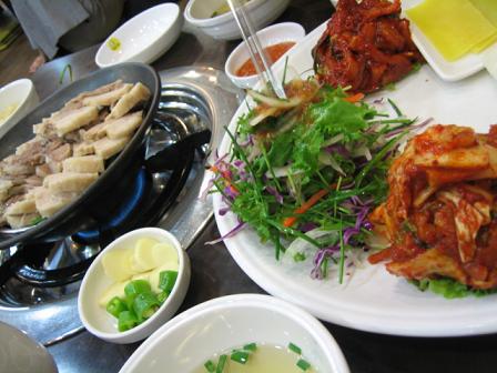 今回ソウルの旅2泊3日と言えども1日目夕方5時着、最終日朝9時前のリムジンで空港へ向かうというぐあいで昼ゆっくり行動できるのは中日の丸1日だけだった・・・というわけで大事な中日南楊州までドライブしてソウルへ戻り、いつもは最終日に空港へ行く前マートへ行くことが多いんだけど今回は無理なのでこの日行きました~~やっぱりここのお菓子売り場は日本人率高いね~なんて思いながらも同じように私もお菓子の買占めに・・・今回は他の方のブログで紹介されていたプリモと黒五というお菓子目当て見つけて迷わずカゴにいっぱい入れちゃったよその後ホテルへ荷物を置いて東大門あたりへ夕食兼ねてショッピング。夕食は何にしようかとお友達と相談しておいしいチヂミのお店に決めたのにあいにくの満席でアウト!結局決めたのが・・・1日目はみんなでワイワイ楽しいサムサムその日の真夜中はチョッパルで、今夜はさすがに豚さんは・・・ と思いきや なんと再び豚さんに ウォンハルモニのポッサムキムチこの店、初めてじゃなくて~~ここの甘めのキムチは好き嫌いあるらしいんだけど私は好きです本当はキムチはちょっと酸っぱくなったぐらいが好きなんだけど~なぜかここのキムチは嫌いじゃなくてぇ~注文したのがモドゥンポッサムっていうのだったような気がしますぅ お肉とキムチを巻くのに白菜や大根の薄切りしたのがあって、また薄~いお餅もあってネ~これがまたイケるお餅だけおかわりしちゃいました。1000Wしたけどね今回の旅ほど豚さん続けて食べたことなんてないよぉ~なんだか豚さんに恨まれるぐらい食べちゃったかもね~ゴメンね豚さん!でも、私の胃袋は“幸せ◎二重丸” なのでした本日の笑顔… 80点