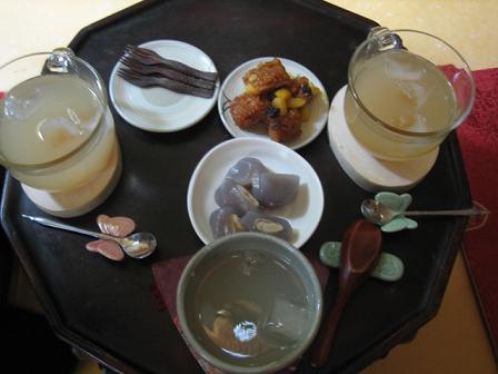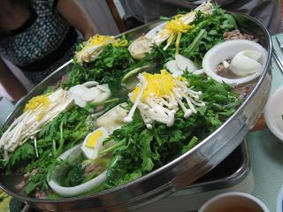 さあソウル滞在2日目。早めに支度して朝ごはんは南山ケーブル乗り場近くの食堂でいつものスンドゥブチゲ!ここは最近滞在中一度は来るお店。・・・なのにいつもデジカメで撮るの忘れちゃうの~で、今回も・・・やっぱり忘れたその後、日本のお友達に頼まれたカバンを買いに行き(ここは多くを語れないのでサラッと流しますが・・・) 鍾路3街のピカデリー劇場で映画を観ました。映画の内容はイマイチでしたが・・・久々の韓国映画で楽しめました確か人の名前が題名の映画だったなぁ~ って題名を覚えていません。かなりアバウトでしょ^^;私は~~イ・ビョンホン、チョン・ウソン(男前で好きなの~)、そしてあと1人は“大統領の理髪師”“グエムル”のパパ役していた俳優さん、この3人が出演している映画を観たかったんだけど・・・まだ公開前でした残念!明洞ブラブラしてからホテルへ一旦もどりひとやすみ! 暑い暑い外の暑さをよそにクーラーの聞いた部屋で約束していたオフ会の時間までしばらく爆睡前回は遅刻するわ地下道間違うわでかなり迷惑かけてしまったので今回の待ち合わせには一番乗りが必須条件と自分で決め、ホテルを5時半に出発一人でなんとか乗れるようになった地下鉄をキョロキョロしながら利用して無事忠武路駅6番出口の集合場所へ!よし 一番ノリだ待っている間、通る人を観察道路の向かいのビルから退社時間なのか若い女の子達が沢山出て来て~~毎回思うけど1人で歩いている韓国の女の子って結構顔が怒ってる表情で歩いている子が多いと感じる。『もっと口角あげてスマイルスマイル』って言いたくなるよぉそれから待っている約15分程の間、なぜか通る男の人の視線を感じて居心地悪かったよぉ~私、決して自意識過剰じゃないですよッ でも“この人が今日初対面のぷ~吉さんかな~?”と思い、声を掛けたくなるぐらいジーッと見ていく人が多かった。日本人ってバレバレだったのかな・・・ 日本人が1人で立ってかわいそうって・・・それで全員揃い(2名が集合場所の角の反対側で待っていたことが判明して一同笑ってしまった)本日のお店『珍古介』へ・・・注文や追加など何から何までぷ~吉さんにおまかせして、注文後とりあえず自己紹介を・・・その後は一同おしゃべりと飲んで食べる事に専念!suzuさんはなにやらソウル情報かseoulmikiさんと話し込んでいた。ぷ~吉さんは自分からこの中で一番年下であろうと言い切って、若干のブーイングを受けていたでも結局1名様のみ頑なに歳を白状せず真相は闇の中で終わってしまった・・・今回のお料理なんだか宮廷料理っぽい感じでお鍋の具が綺麗に並べられており、韓国料理特有の辛味・赤味がなく見た目にもあっさり系。お味もあっさりとホント美味しく私ガッツリ食べてしまった~~。たぶん私が一番たべちゃってたよね オボクチェンバン ついてくるおかず そしてワイワイにぎやかに飲んで食べて楽しかったです。オフ会メンバーの皆さんありがとうございました~ ・・・が、実は私かなり飲みすぎていたようで~何を話したのか所々覚えていない・・・ベーグルさん・pi☆milさんはあまりお酒を飲まれていなかったので鮮明なことでしょう。suzuさんはちょっとヤバイかも~~男性2人はいつものことのようで慣れておられへっちゃらでしょう・・・というわけでおしゃべりしすぎていたらと思うとちょっとビビッてる私です本日の笑顔… 95点